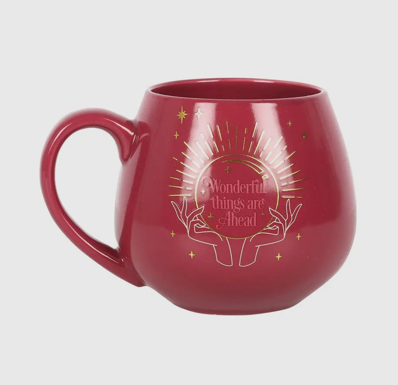 Voeg een vleugje extra magie toe aan elke warme kop thee. Deze ronde mok heeft een boeiend kleurveranderend ontwerp dat na het toevoegen van een warme drank een verborgen fortuin onthult in de mystieke kristallen bol. De verborgen tekst luidt: 'Wonderful things are ahead' op een roze basis. Bevat ongeveer 500 ml. Niet in de magnetron gebruiken. Uitsluitend met de hand wassen.