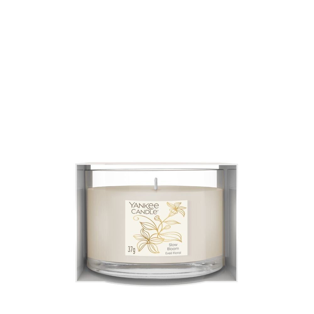 Yankee Candle Slow Bloom is zacht, bloemig en elegant. Frisse bloesemtonen openen de geur licht en vrolijk, gevolgd door een hart van verfijnde bloemen dat zich langzaam ontvouwt. Warme ondertonen in de basis zorgen voor een comfortabele, serene sfeer. Een geur die je uitnodigt om het tempo even te verlagen en te genieten van het moment.